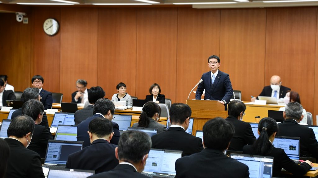 予算委員会2日目は、補正予算議案の討論・採決ののち、令和8年度当初予算議案の総括説明および区の所管に関する質疑を行いました。