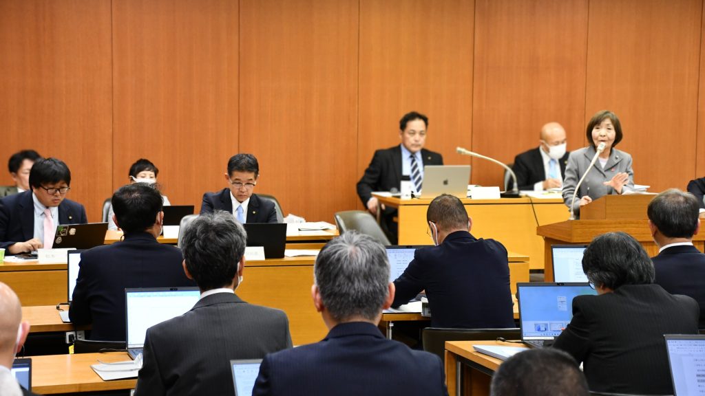 私たちの会派からは総括質疑には添野ふみ子が、討論には堤日出喜が登壇します。