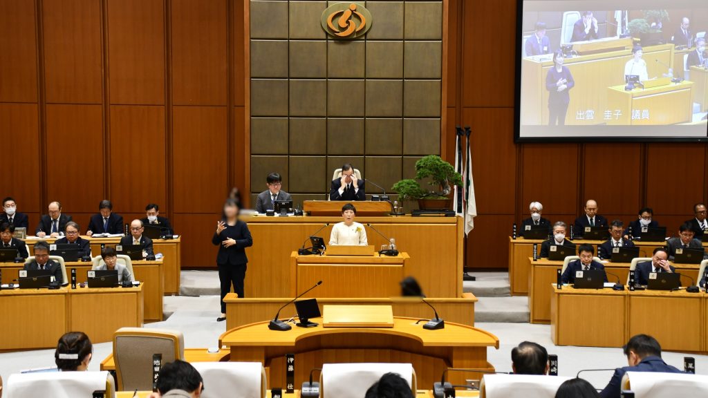 さいたま市議会では、手話言語条例(条例検討プロジェクトチーム 会長:西山幸代(大宮区))を制定しています。これを受けて、本日と明日の本会議では、手話通訳及びインターネット議会中継におけるAI字幕が試行的に実施されています。引き続き、聴覚に障害のある方などに対する情報取得の機会拡大及び利便性向上に取り組んでまいります。